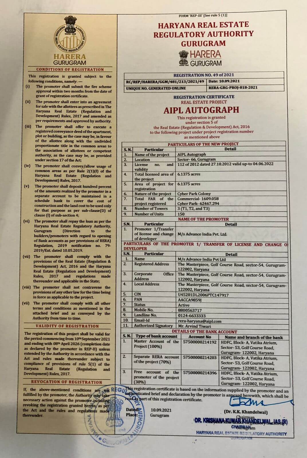The Autograph Is Elevated Almost 1.2 Metres Above The Perimeter Access Road. Aipl Autograph Has A Spacious Work Area To Choose Between 4400 And 11000 Square Feet, Perfect For Any Commercial Space. Across The Three Humongous Towers With G+12, G+5, And G+8 Inter-Connected With A Common Central Square Lawn. The Rooftop Of 20,000 Sq. Ft Has A Triple-Top Lobby And Lounge Area. The Ground Floor Is A Retailing Area And An Exhibition Area. As You Reach The Second Floor From The Third Floor Office Area You Will Find The Food Court, The Best-Loved Space. As A Result, The Whole Space Seems Marvelous. The Aipl Autograph Is A Unique, Distinctive, And High-Quality Business Sector.