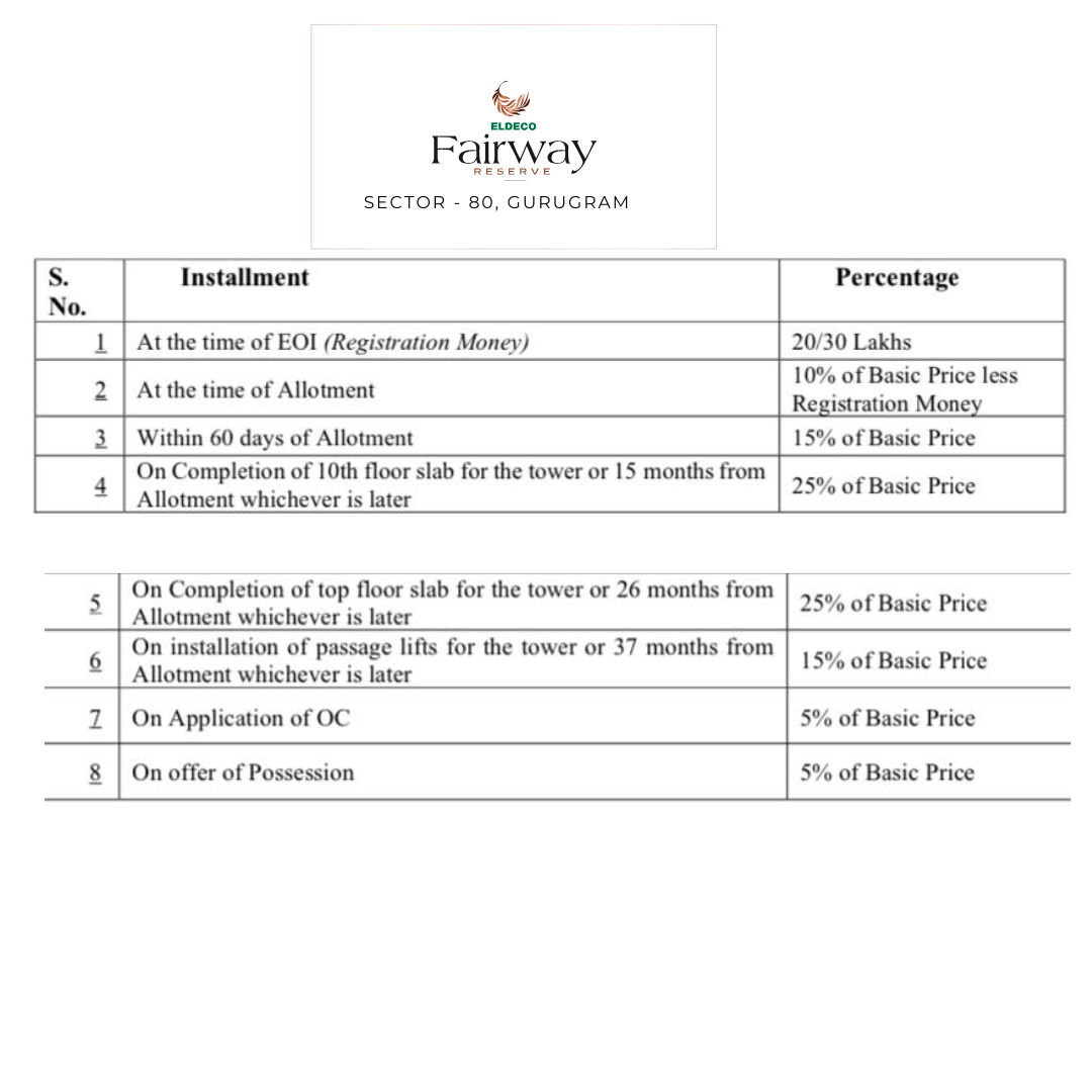 Eldeco Fairway Reserve is an exceptional residential project located in the thriving region of Sector 80, Manesar, Gurugram. Spanning across 8.34 acres of prime land, this development is poised to become a landmark in the area. Developed by the renowned Eldeco Group, it offers a lifestyle that beautifully blends modern living with natural serenity. With a thoughtful design aimed at meeting the needs of contemporary families, Eldeco Fairway Reserve features spacious 3 & 4 BHK apartments ranging from 2200 to 3600 square feet, ensuring comfort and ample living space.