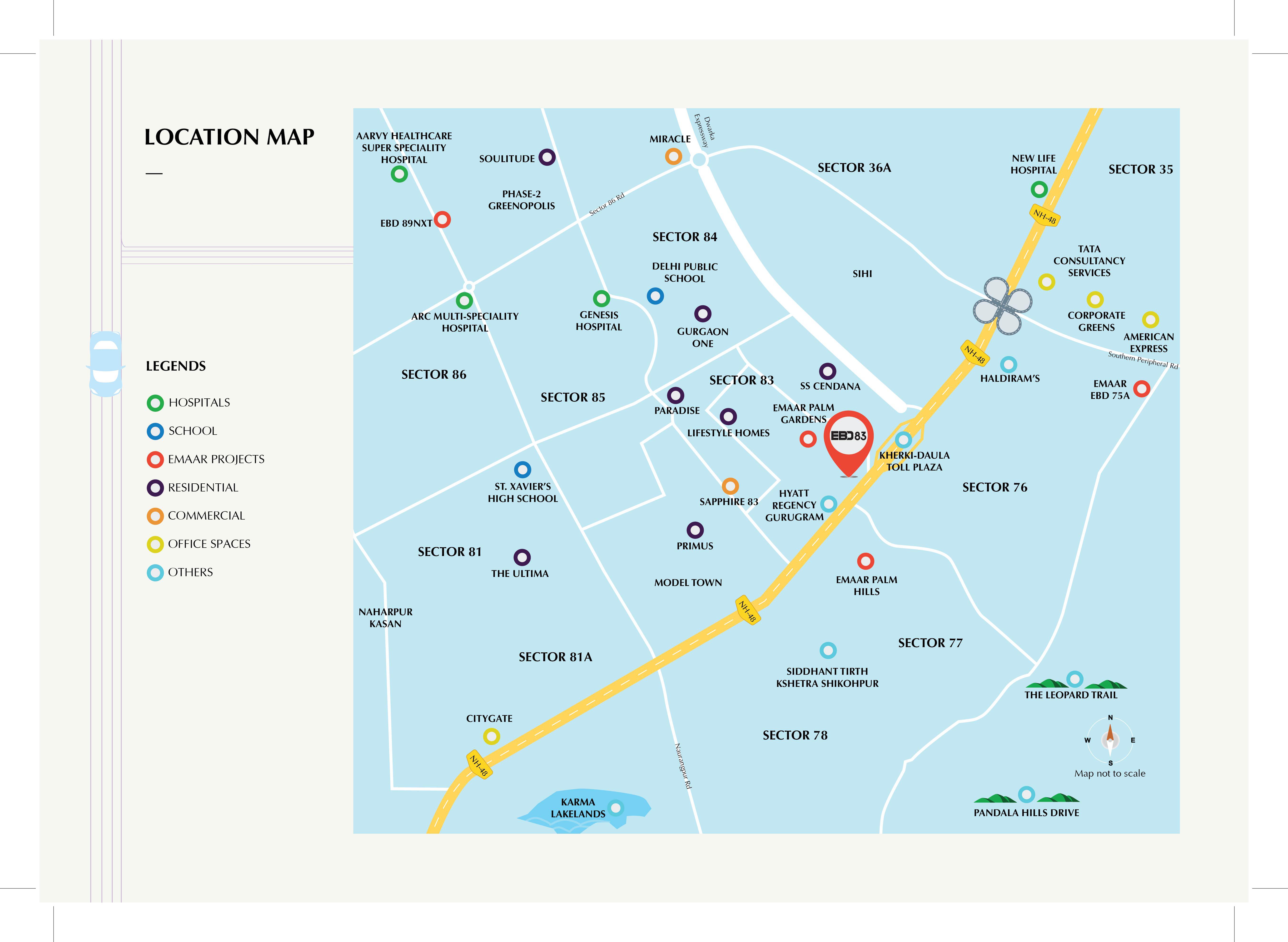 If you have ever wanted to live in an exclusive gated community in an affluent area of the town, now is your chance. The Palm Premier is located on Palm Hills in Sector 77 of Gurgaon. The strategic planning by the Emaar Group has made it possible for this project to be well-connected by the highways while ensuring that the residents enjoy a peaceful environment away from the city.