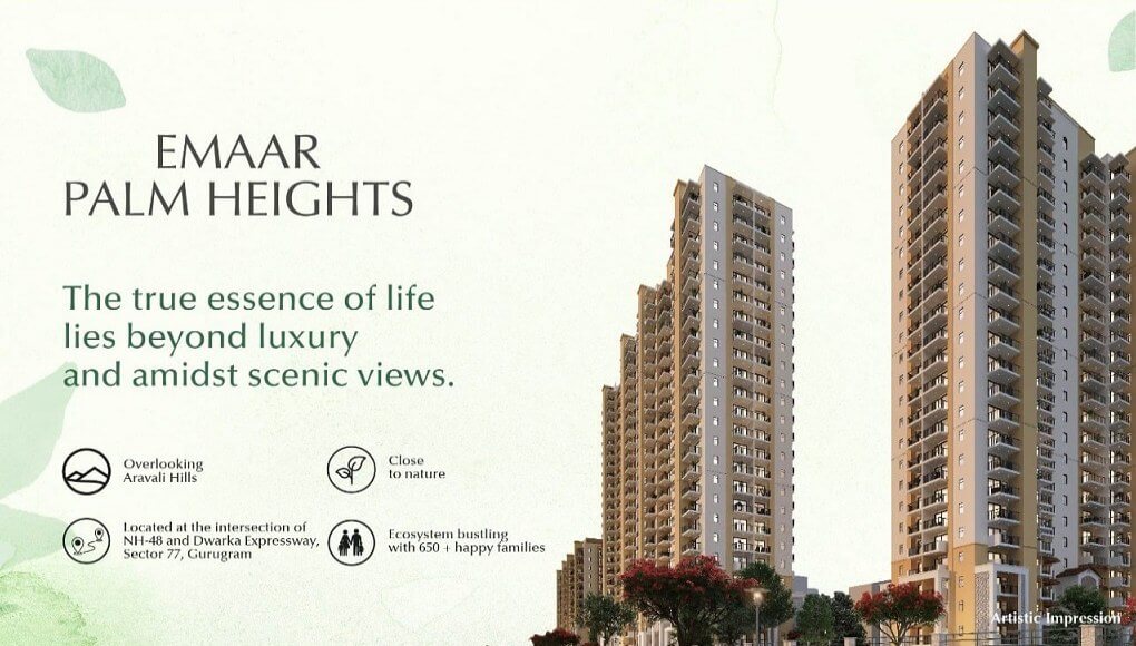 Emaar India Introduces Signature Residence Apartments at Emaar Palm Heights at Sec 77 Gurgaon, Emaar palm Heights Signature Residence offers 3 Bhk Park Facing & Aravalli Facing Apartments at Palm Hills NH8 Gurgaon, Signature apartments offers Awesome Breath-taking Green view along with L shape ready Swimming pool , Gym, Sona , Spa, kids play area , Meeting room and Much more. Presenting Emaar Palm Heights, a 24-storey skyscraper spread across approx.