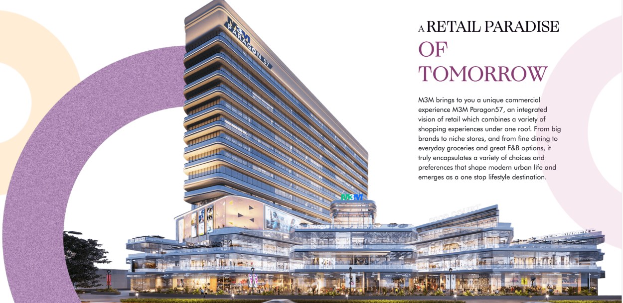 M3M Paragon 57 Commercial offers Mix of Retail shops, Anchor, Multiplex, studio apartment in heart of gurgaon in sector 57 near golf course road extn its surrounded by HNI Catchment. The well-known and world-famous M3M India has completed various Iconic infrastructures in the region of Gurugram and other parts of India which are setting a benchmark for infrastructural development. The group has launched one more state-of-the-art premium commercial project in Sector 57 in Gurugram. The project comprises top-notch conveniences like modern shops, modern workplaces, and new aged services apartments. With an excellent blueprint and impeccable design, it intends to provide multi-purpose spaces to complement the world-class business environment.
