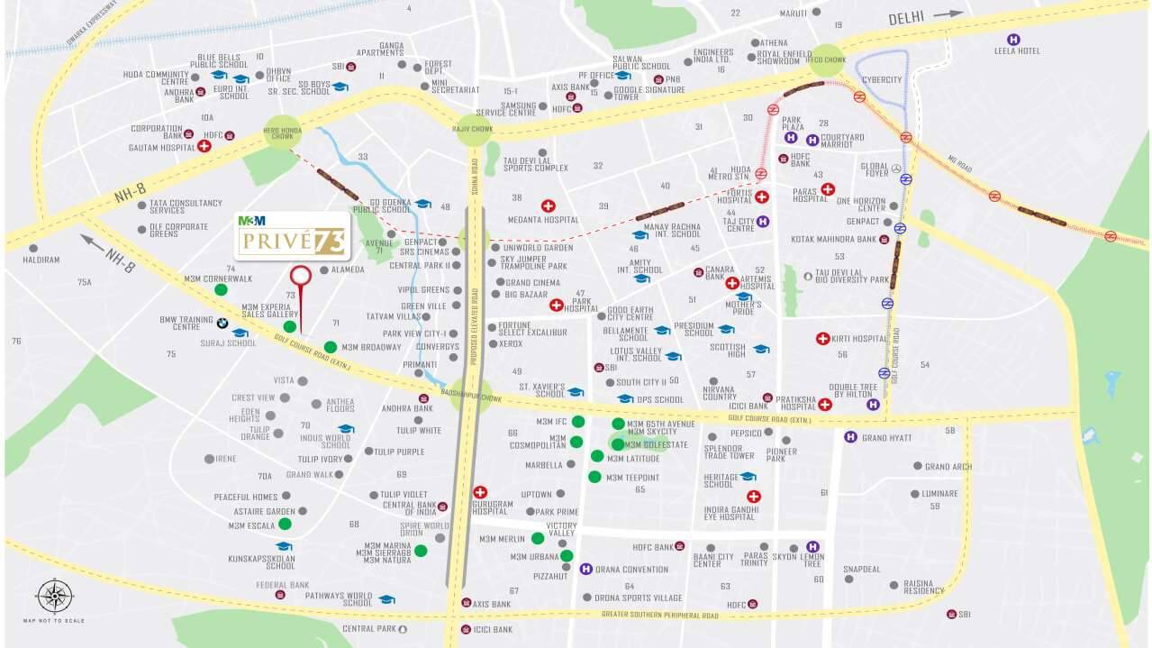 M3M Prive73 commercial Retail Destination has also been integrated with a series of large open spaces. Few of the specifications that make this project a sure-shot destination to attract the footfall are: 2 front, SR dancing and 24mtr Road facing. 10 screen multiplex, 1600 seats at 3rd and 4th floor, 3 Anchor Stores, 3 Basements, Ground/Lower Ground/Upper Ground and First floor, DX Split air-conditioning, water cooled in retails units.