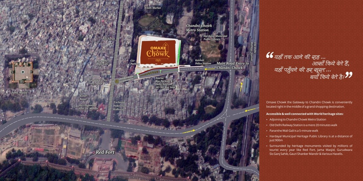 Omaxe Heritage pvt Ltd Launched Omaxe Chandni Chowk Commercial hub at asia biggest Locality Chandni Chowk Delhi . Omaxe Chandni Chowk commercial offers once in 300 years opportunity In heart of Asia oldest largest and busiest shopping destination Chandni Chowk. Omaxe Chandni Chowk projects spread over 4.6 Acres and possession by Dec 2021, its offers lockable and unlock able space with assured and lease guaranteed after possession. Grade A Tenant already shown interest to occupy commercial space in Omaxe Chowk