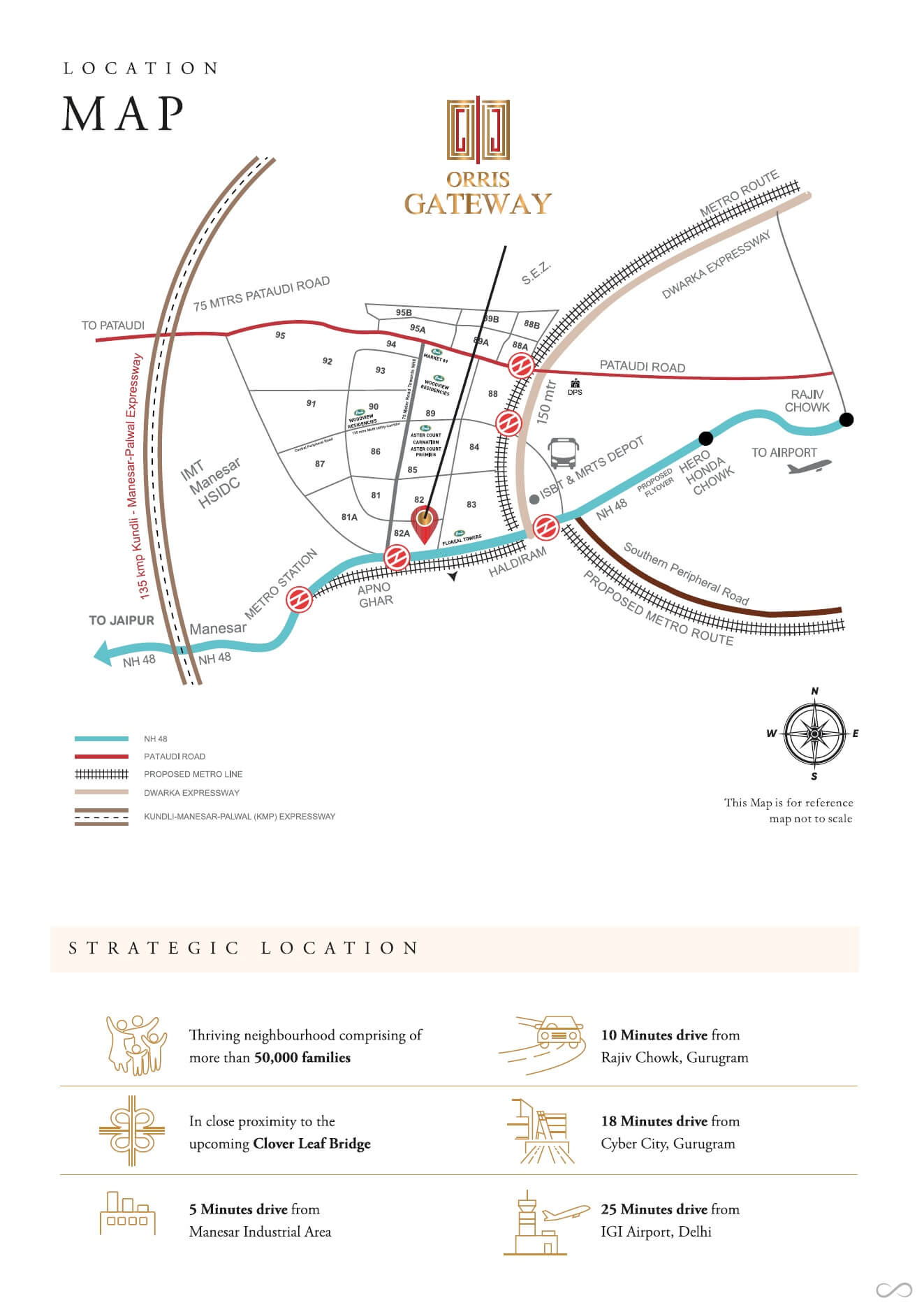 Brand visibility is an added advantage Orris Gateway SCO Plots would give you with the visible high toll collection on NH-48. The triple entrance gateway offers the congestion-free movement of traffic in and out of the premises. To work and shop amidst the pleasant weather full of fresh air is always a dream and Orris Gateway SCO plots make that dream come true for you!